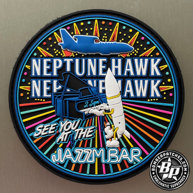 Designed and produced for 2 Squadron, Royal Australian Air Force, flying the E-7A Wedgetail for their participation in Neptune Hawk, Nellis AFB, Nevada. 2025 4″ dia, PVC, 3D detail, hook back.