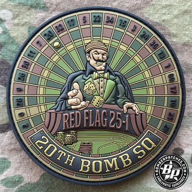 Designed and produced for the 20th BS, from Barksdale AFB, Louisiana, for their participation in Red Flag 25-1, Nellis, AFB, Nevada. 2025 PVC, 4″ dia, 3D detail, hook back.