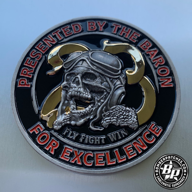 Commander’s coin designed and produced for the 23d BS, to be given as a reward for outstanding performance and/or achievement. 2.25″ dia, antiqued silver, polished gold, 3D detail.
