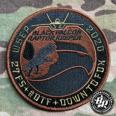 This patch was designed and produced for the 27th Fighter Squadron, Langley AFB, VA. 4″ diameter, 100% embroidered, merrowed border, hook back.