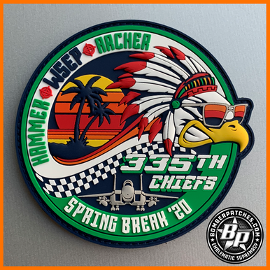 Automatic 25% off remaining inventory. Designed and produced for the 335th Tactical Fighter Squadron, Seymour Johnson AFB, SC, for their participation in the Spring 2020 combined Weapons System Evaluation Program, Combat Hammer and Combat Archer exercises. All of which were cancelled due to the current global situation. This patch is the genuine, authorized version. PVC rubber, 4″ dia, 3D detail, hook back