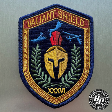 Designed and produced for the 36th Wing, Andersen AFB, Guam, for their participation in Valiant Shield 2024. 4″ x 3.14″ 100% embroidered, merrowed border, hook back.