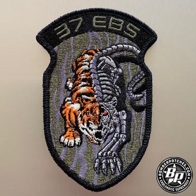 This design pays homage to previous “Friday” 37 EBS patches, updated with the “cyborg tiger”, which is reference to recent capability updates made to the B-1B fleet. The content of this patch is a Bomber Patches original design. 4.125″ tall, 2.5″ wide 100% embroidered, merrowed border, hook backing with corresponding loop material included.