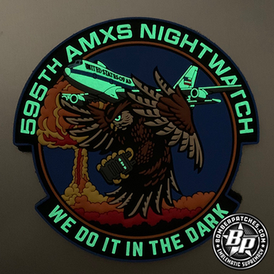 Designed and produced for the 595th AMXS, Offut AFB, NE. 4″ tall x 4″ wide, 3D and glow in the dark detail, hook back.