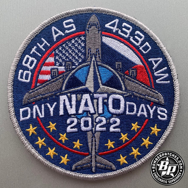Designed and produced for the 68th AS/433d AW from Barksdale AFB, Louisiana, for their participation in Nato Days, Ostrava, Czech Republic. 4″ dia, 100% embroidered, merrowed border, hook back.