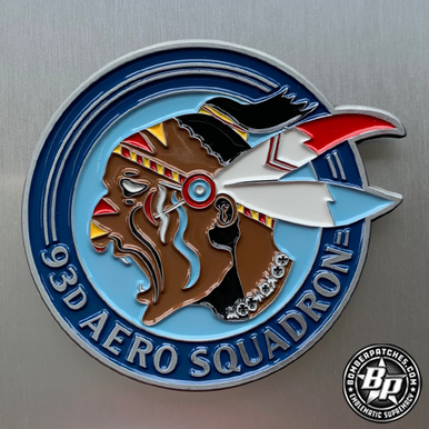This coin was designed and produced for the 93d Bomb Squadron at Barksdale AFB, Louisiana, in honor of First Lieutenant Charles Rudolph d’Olive. First Lieutenant Charles Rudolph d’Olive was a World War I flying ace, credited with five aerial victories. He was the last World War I aviator to be declared an ace, in 1963. He enlisted into aviation service in Memphis during Bloody April 1917. He trained in France, and was posted to the 93rd Aero Squadron on 23 August 1918 as a SPAD S. XIII pilot. He scored the new unit’s first victory on 12 September. The following day, he shot down three Fokker D. VIIs, two in conjunction with George Willard Furlow; it was an exploit that earned d’Olive the Distinguished Service Cross. He scored once more, on 18 October 1918.Ten days later, he was transferred to the 141st Aero Squadron as a Flight Commander. 2.25″ x 2.4″, 3D and enamel detail.