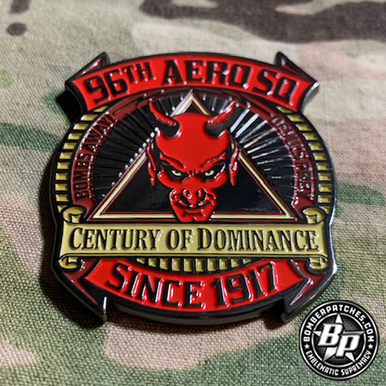 Designed and produced for the 96th AERO Squadron100th Anniversary, Barksdale AFB. 2.25″ tall x 2″ wide, polished silver.
