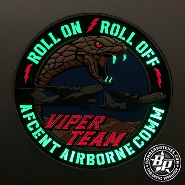 Designed and produced for the AFCENT Airborne Communications Squadron, Al Udeid Air Base. 4″ diameter, 3D and glow in the dark detail, hook back.