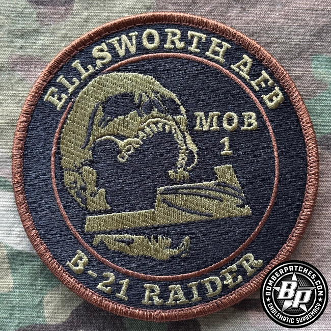 Designed and produced for Ellsworth AFB, South Dakota, 2025. 4″ dia, 100% embroidered, merrowed border, hook back.