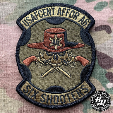 USAFCENT A/6 Six Shooter OCP Current / Update, Al Udeid Air Base, Qatar. 4″ x 3″, 100% embroidered, hook back.
